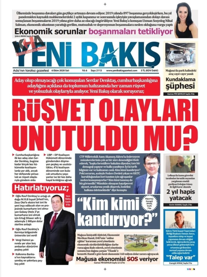 KKTC'de Gazeteler Bugün Ne Yazdı? 06 Ekim 2020 Salı