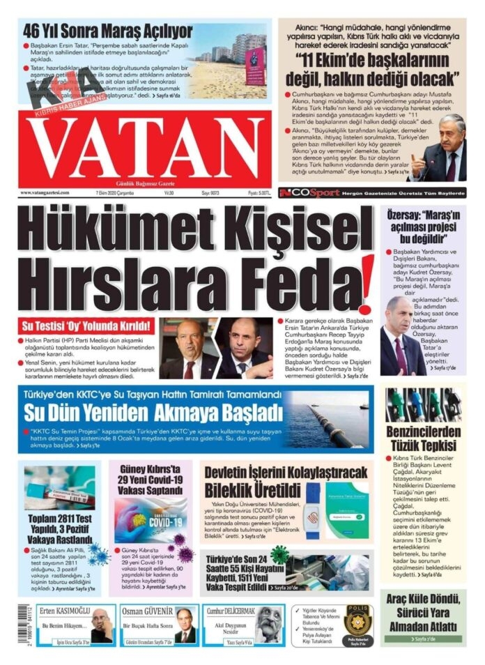 KKTC'de Gazeteler Bugün Ne Yazdı? 07 Ekim 2020 Çarşamba