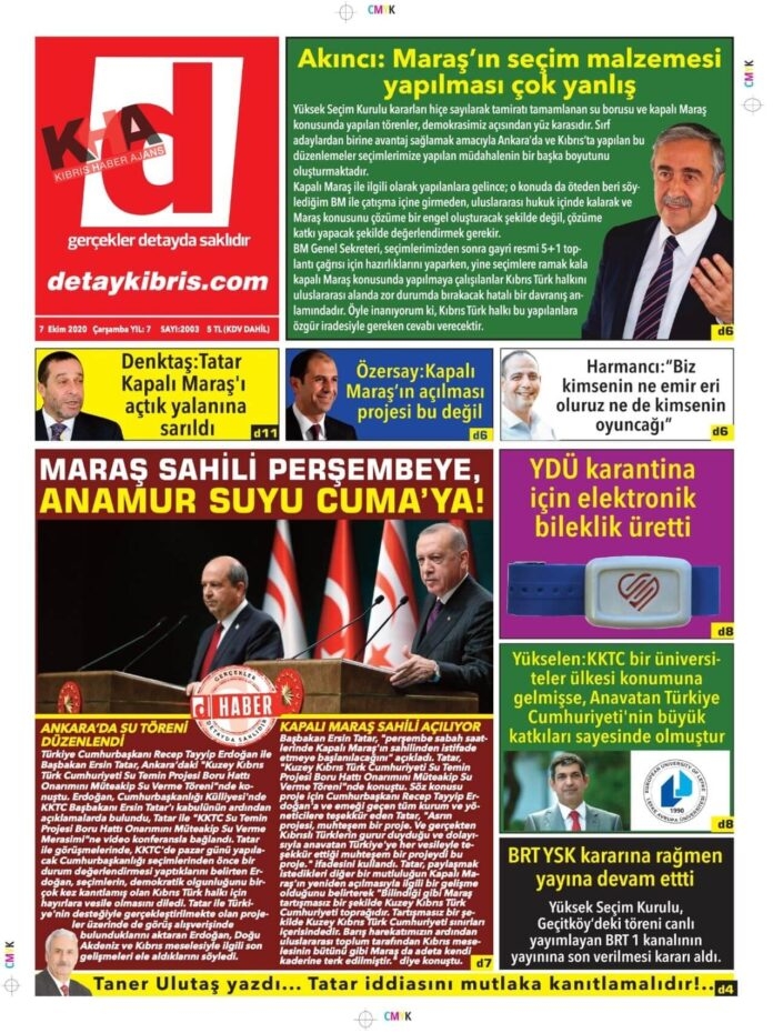 KKTC'de Gazeteler Bugün Ne Yazdı? 07 Ekim 2020 Çarşamba