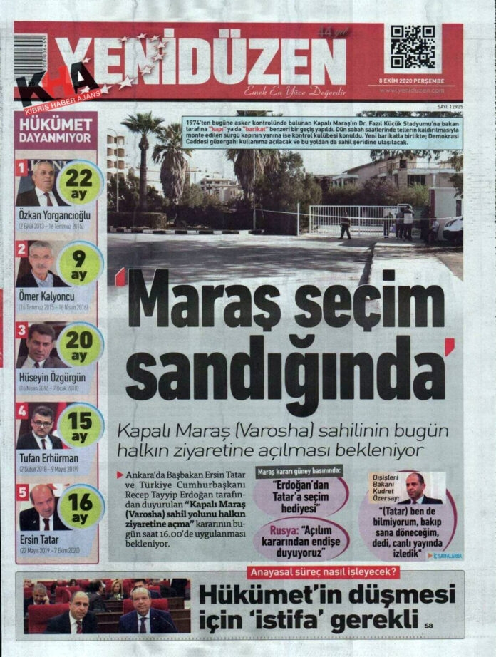 KKTC'de Gazeteler Bugün Ne Yazdı? 08 Ekim 2020 Perşembe