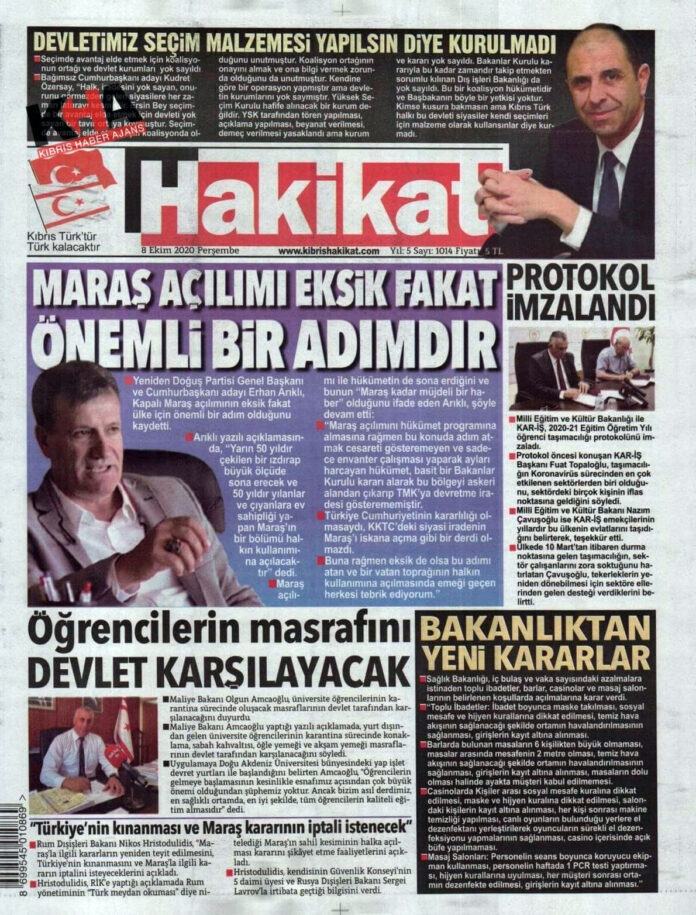 KKTC'de Gazeteler Bugün Ne Yazdı? 08 Ekim 2020 Perşembe