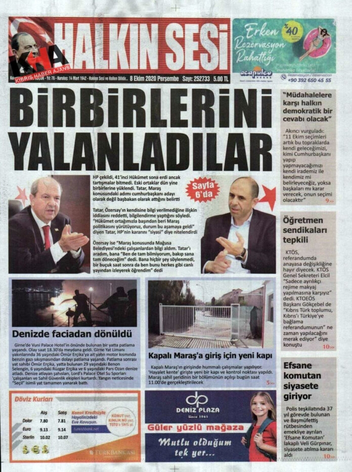 KKTC'de Gazeteler Bugün Ne Yazdı? 08 Ekim 2020 Perşembe