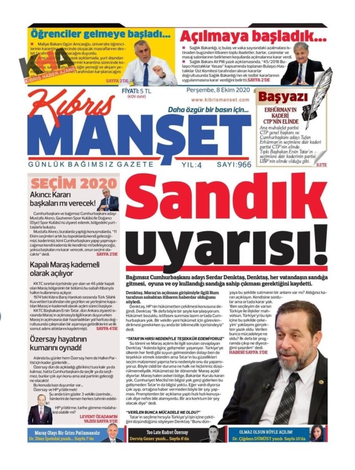KKTC'de Gazeteler Bugün Ne Yazdı? 08 Ekim 2020 Perşembe