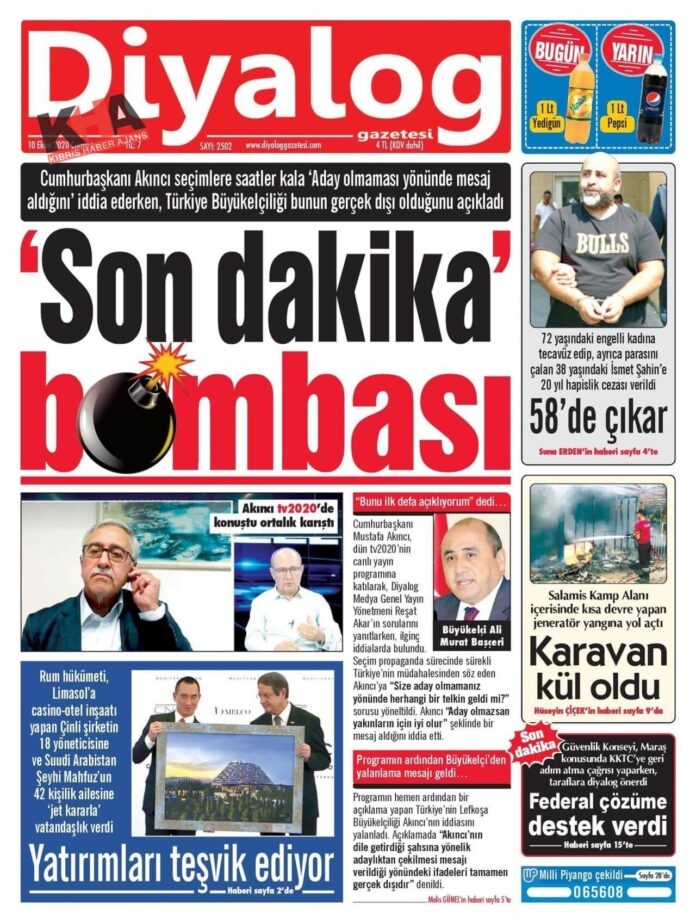 KKTC'de Gazeteler Bugün Ne Yazdı? 10 Ekim 2020 Cumartesi