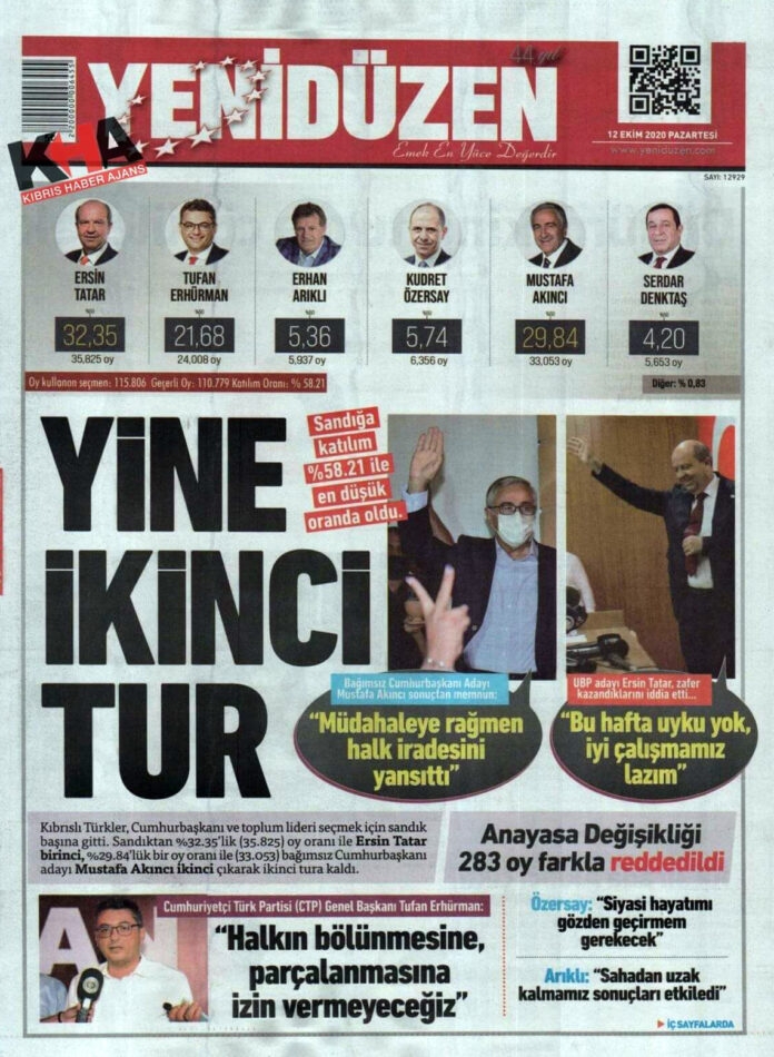 KKTC'de Gazeteler Bugün Ne Yazdı? 12 Ekim 2020 Pazartesi