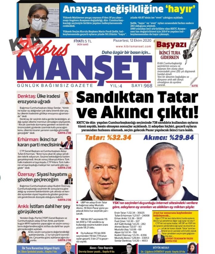 KKTC'de Gazeteler Bugün Ne Yazdı? 12 Ekim 2020 Pazartesi
