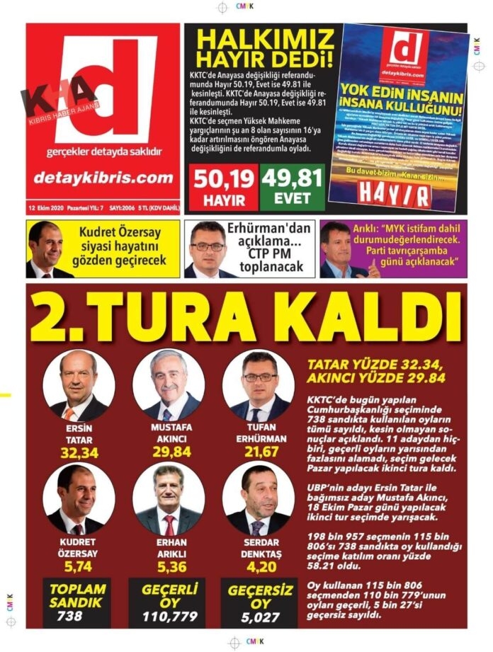 KKTC'de Gazeteler Bugün Ne Yazdı? 12 Ekim 2020 Pazartesi galerisi resim 1