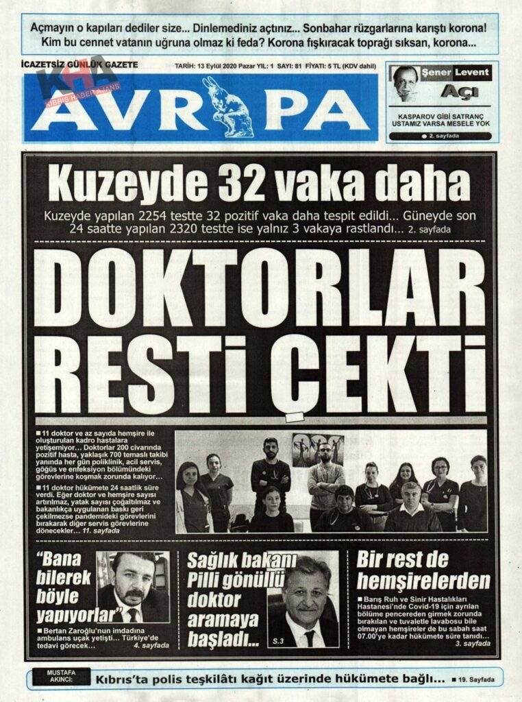 KKTC'de Gazeteler bugün ne yazdı? 13 Eylül 2020