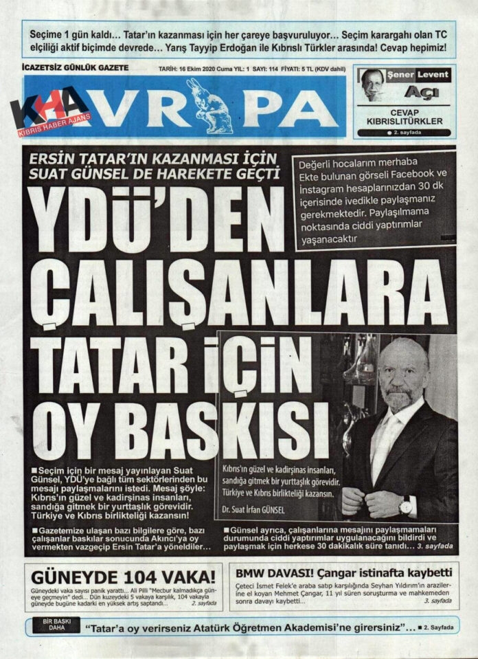 KKTC'de Gazeteler Bugün Ne Yazdı? 16 Ekim 2020 Cuma