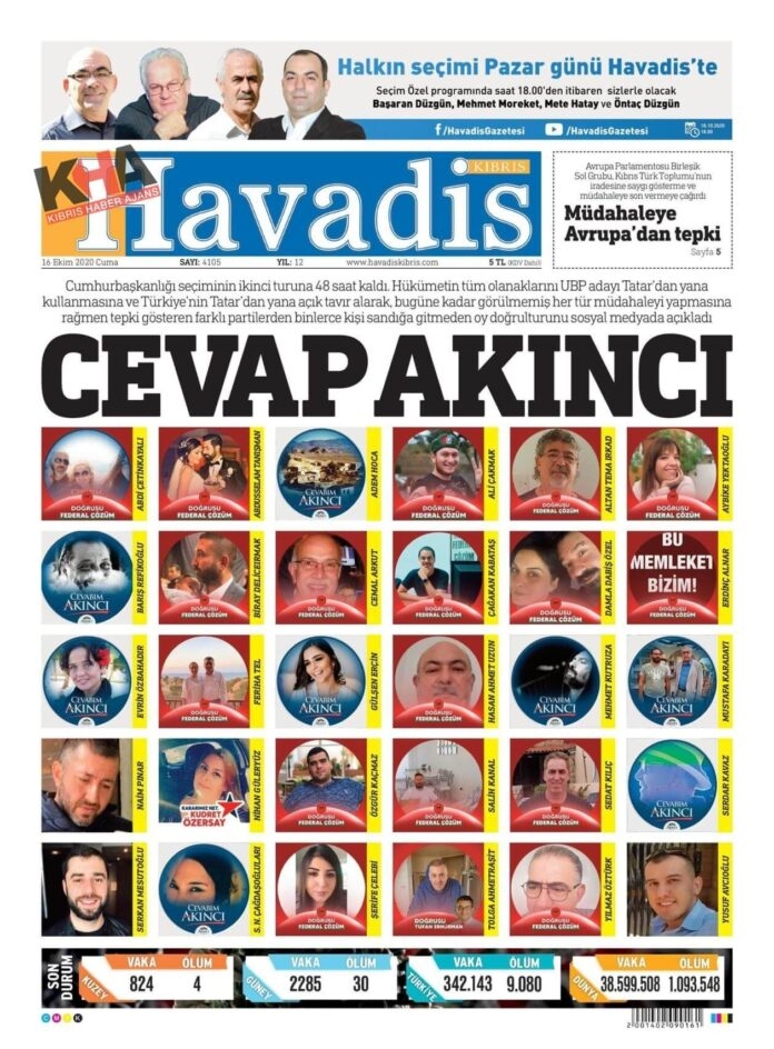 KKTC'de Gazeteler Bugün Ne Yazdı? 16 Ekim 2020 Cuma