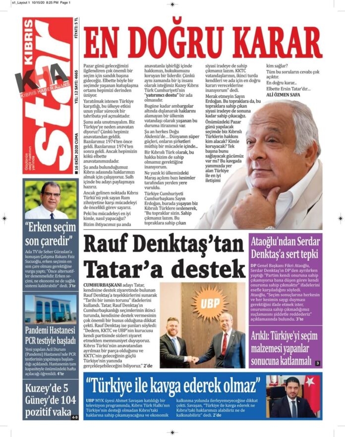 KKTC'de Gazeteler Bugün Ne Yazdı? 16 Ekim 2020 Cuma