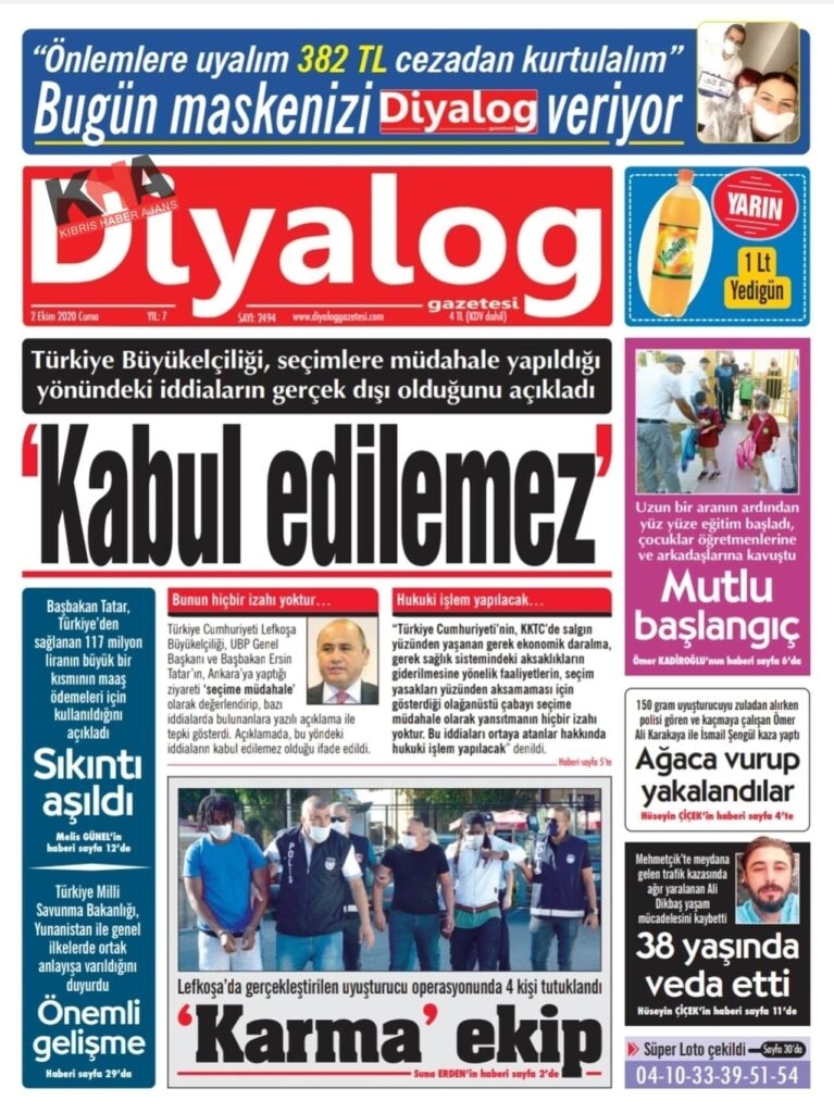 KKTC'de gazeteler bugün ne yazdı? 2 Ekim 2020 Cuma