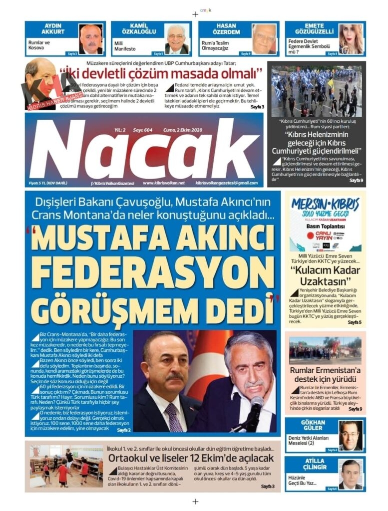 KKTC'de gazeteler bugün ne yazdı? 2 Ekim 2020 Cuma