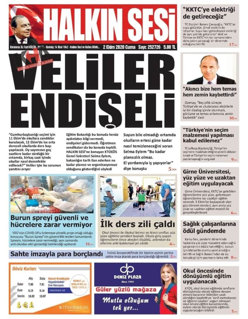 KKTC'de gazeteler bugün ne yazdı? 2 Ekim 2020 Cuma