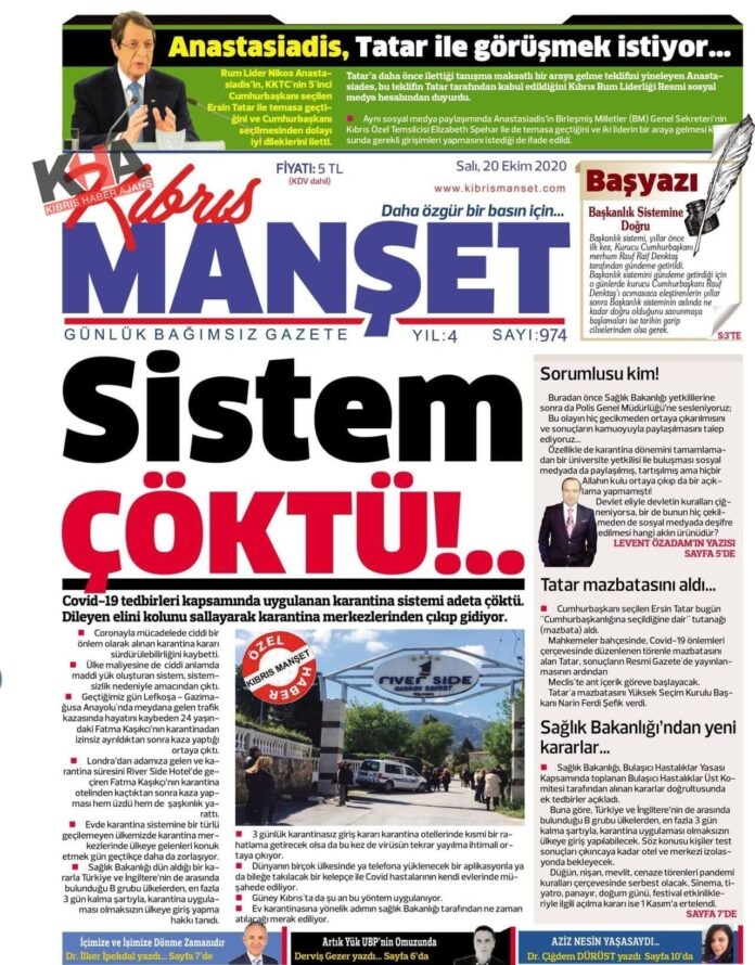 KKTC'de Gazeteler Bugün Ne Yazdı? 20 Ekim 2020 Salı