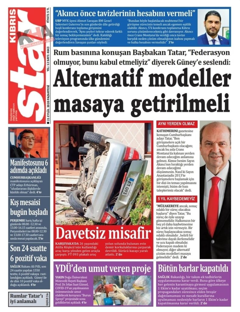 KKTC'de gazeteler bugün ne yazdı? 21 Eylül 2020 Pazartesi
