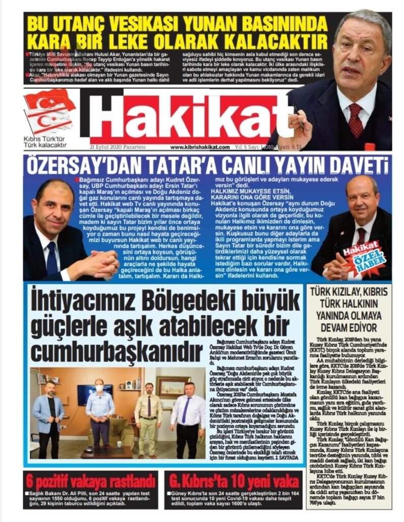 KKTC'de gazeteler bugün ne yazdı? 21 Eylül 2020 Pazartesi