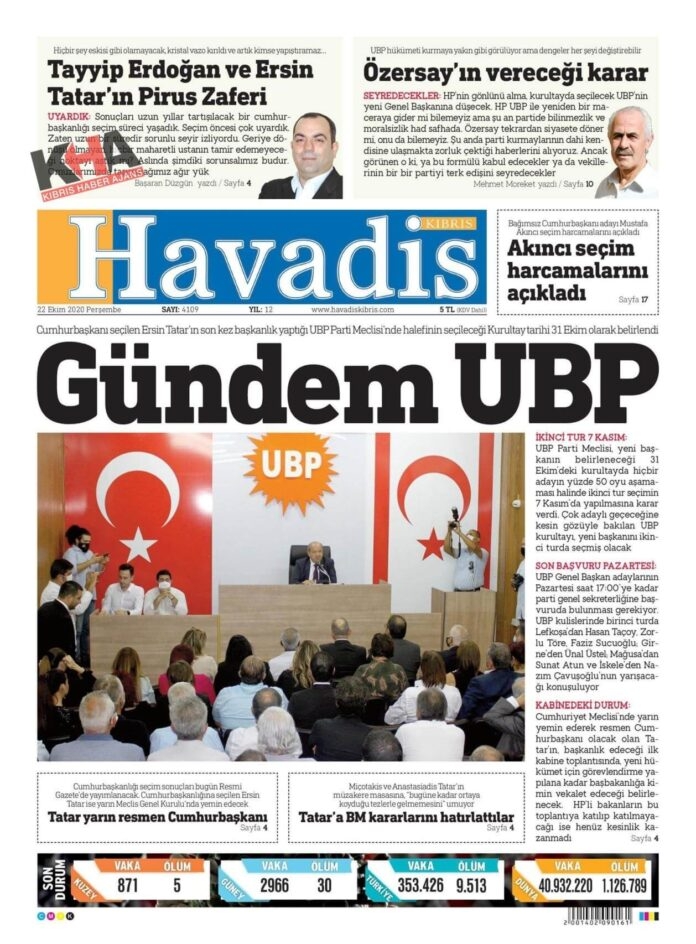 KKTC'de Gazeteler Bugün Ne Yazdı? 22 Ekim 2020 Perşembe