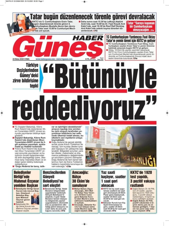 KKTC'de Gazeteler Bugün Ne Yazdı? 23 Ekim 2020 Cuma
