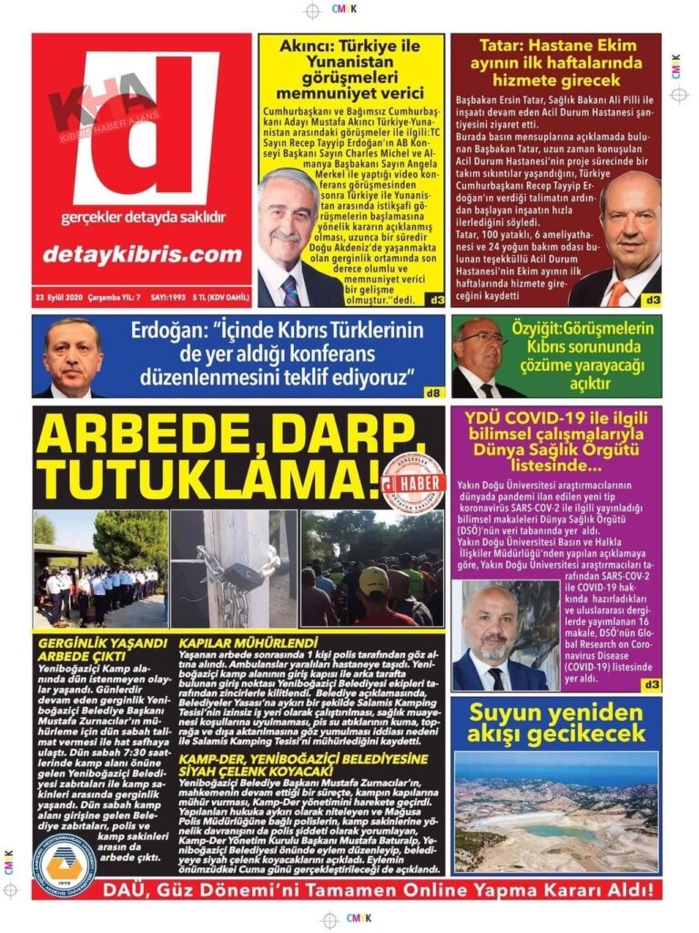 KKTC'de gazeteler bugün ne yazdı? 23 Eylül 2020 Çarşamba galerisi resim 1