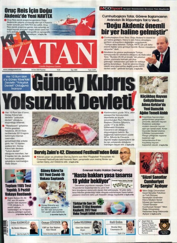 KKTC'de Gazeteler Bugün Ne Yazdı? 26 Ekim 2020 Pazartesi