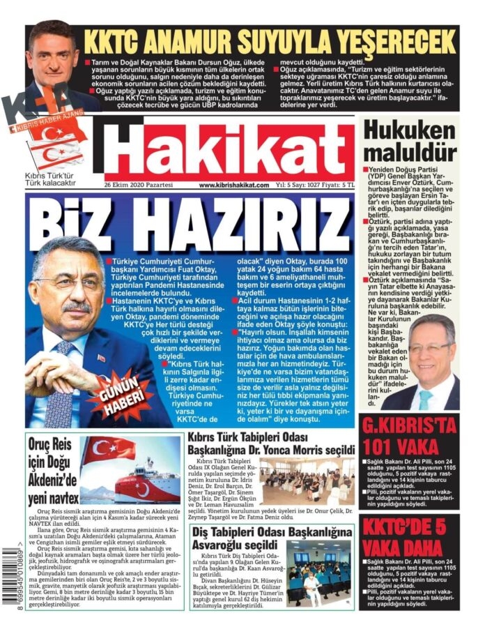 KKTC'de Gazeteler Bugün Ne Yazdı? 26 Ekim 2020 Pazartesi