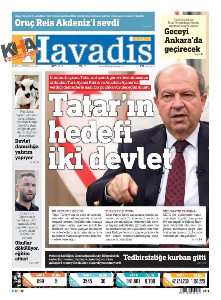 KKTC'de gazeteler bugün ne yazdı? 26 Eylül 220 Pazartesi