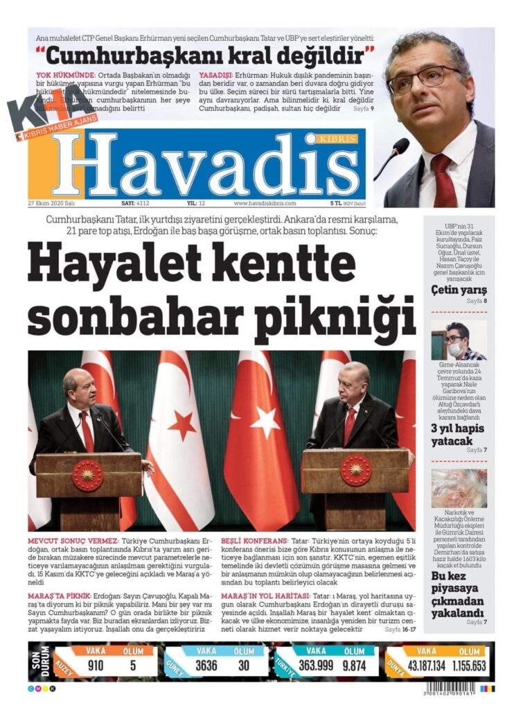 KKTC'de gazeteler bugün ne yazdı? 27 Ekim 2020 Salı
