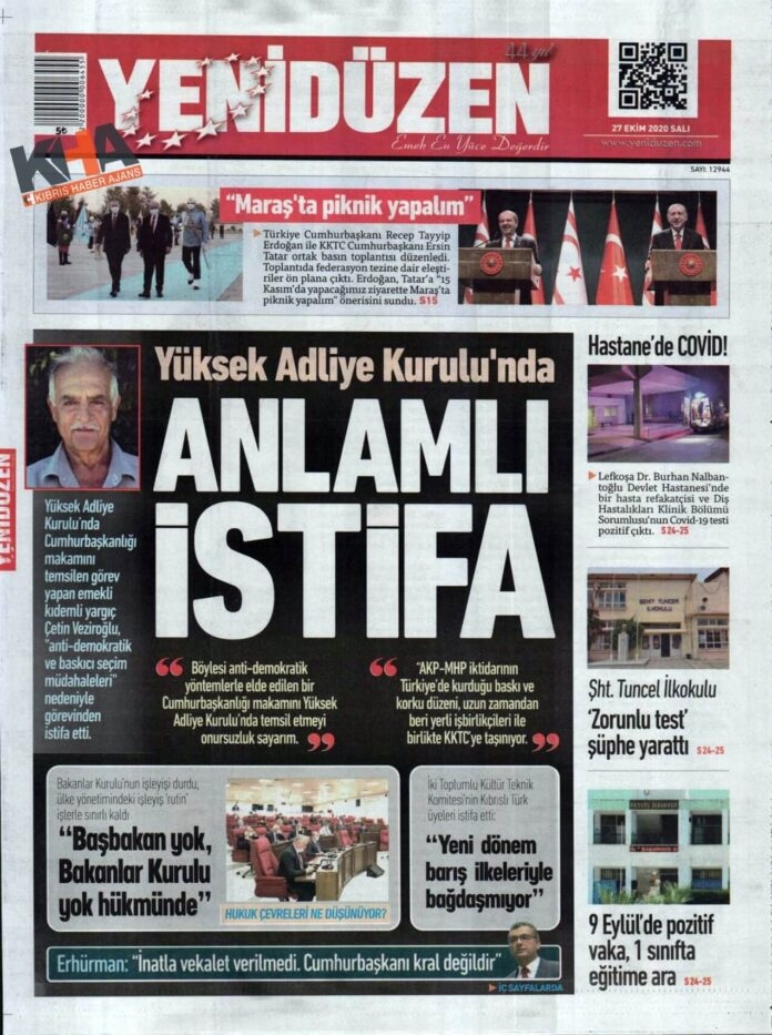 KKTC'de Gazeteler Bugün Ne Yazdı? 27 Ekim 2020 Salı