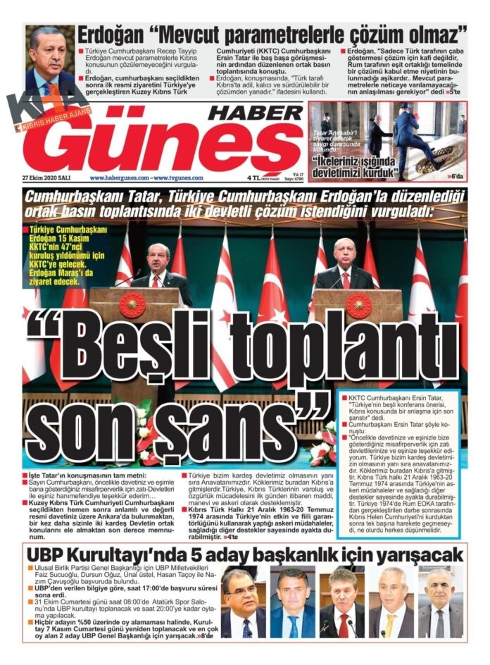 KKTC'de Gazeteler Bugün Ne Yazdı? 27 Ekim 2020 Salı