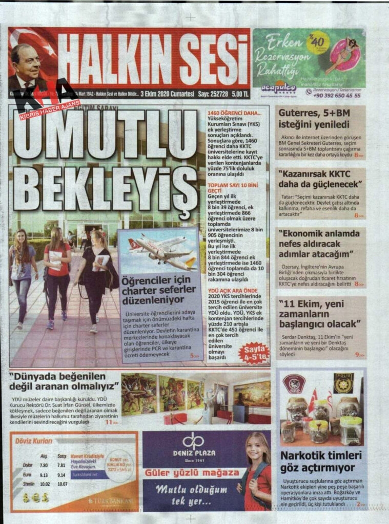 KKTC'de gazeteler bugün ne yazdı? 3 Eylül 2020 Cumartesi