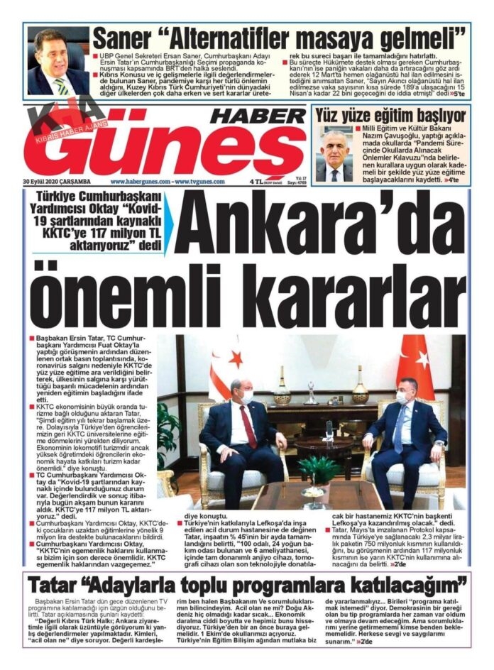 KKTC'de Gazeteler Bugün Ne Yazdı? 30 Eylül 2020 Çarşamba