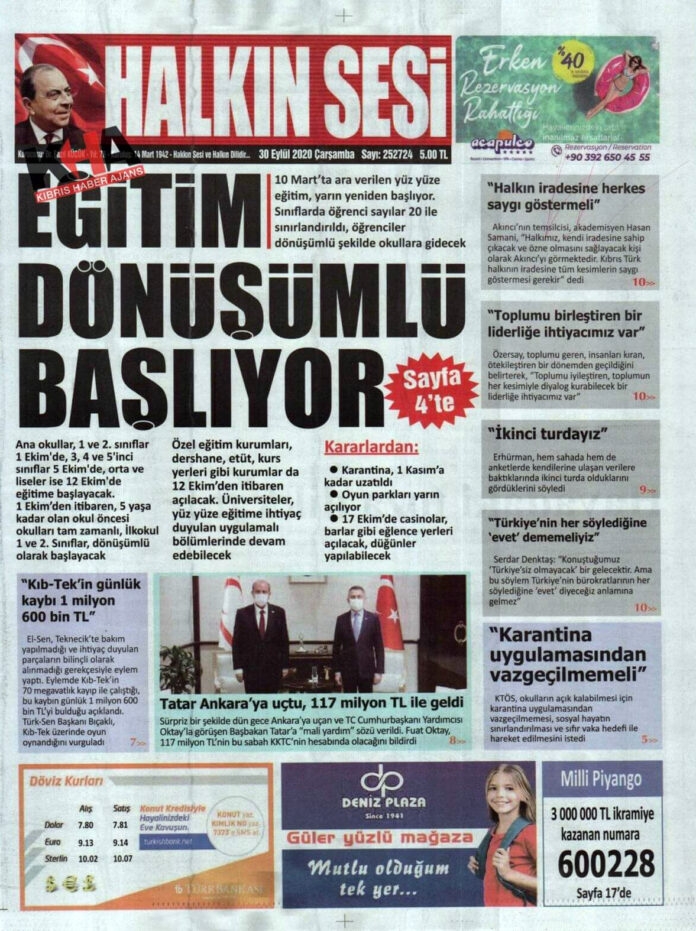 KKTC'de Gazeteler Bugün Ne Yazdı? 30 Eylül 2020 Çarşamba