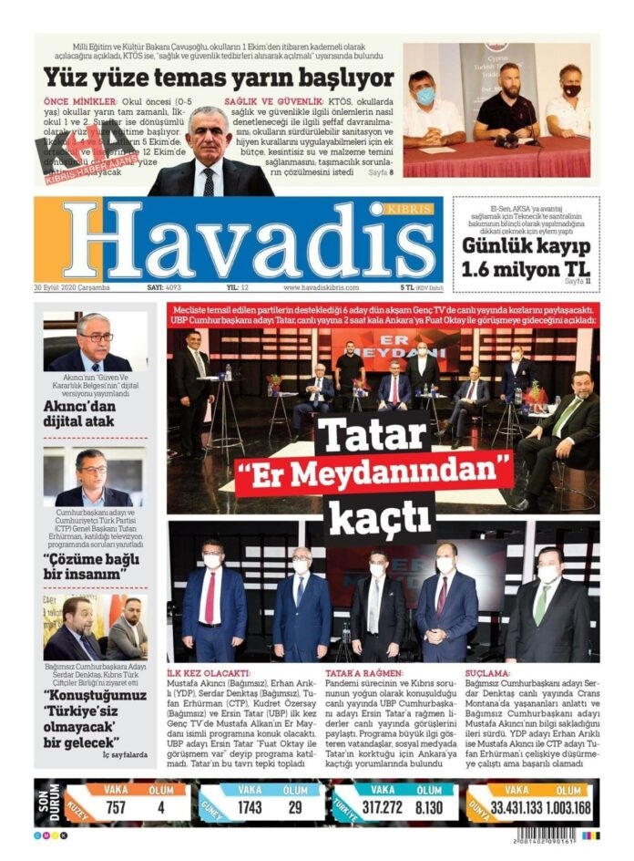 KKTC'de Gazeteler Bugün Ne Yazdı? 30 Eylül 2020 Çarşamba