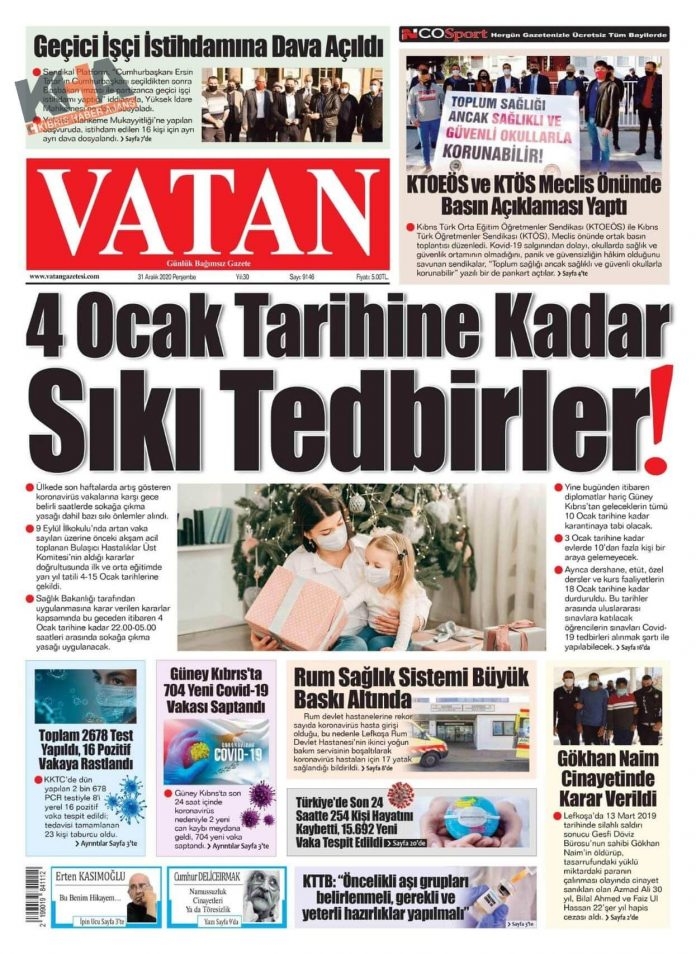KKTC'de Gazeteler Bugün Ne Yazdı? 31 Aralık 2020 Perşembe