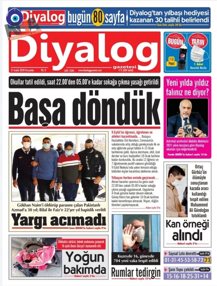 KKTC'de Gazeteler Bugün Ne Yazdı? 31 Aralık 2020 Perşembe