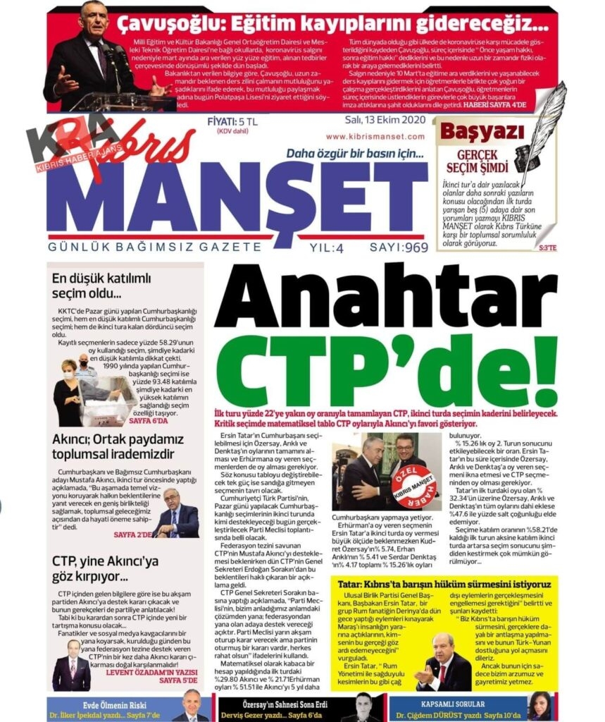 KKTC'de Gazeteler ne yazdı? 13 Ekim 2020 Salı