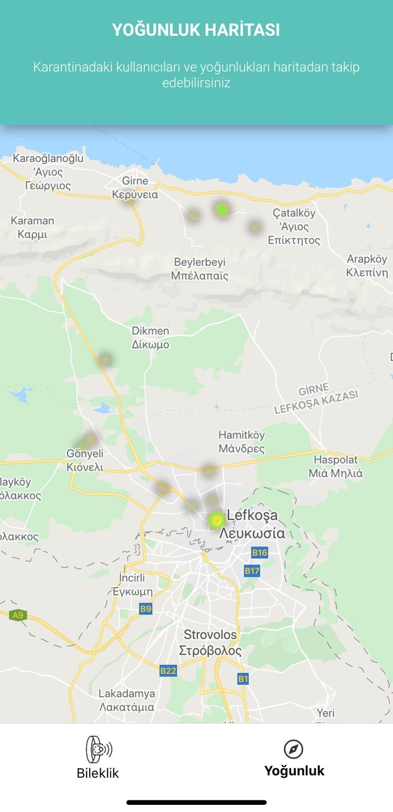 KKTC'de ilk! İşte yoğunluk haritası ve karantina uygulaması!