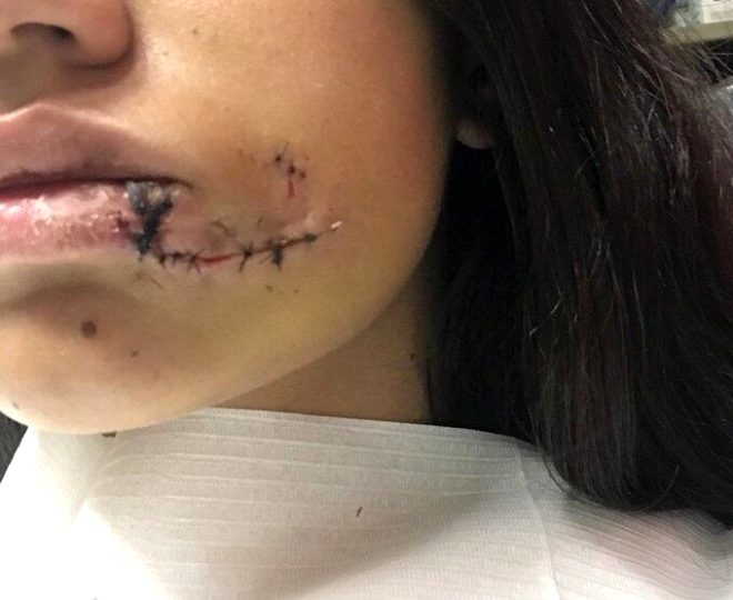 Hastaneye kaldırılan kızın yüzüne 40 dikiş atılırken, Lara olayı Twitter hesabından da paylaştı.