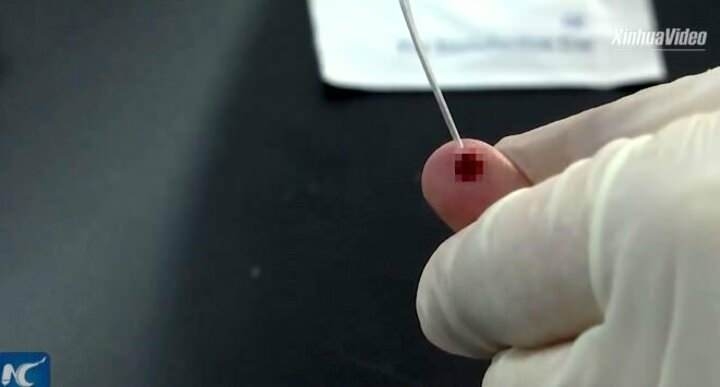 İlk aşamada parmak ucundan alınan kan, test kitine aktarılıyor.
