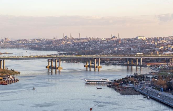Yeditepeli güzel şehir üzerinde kara bulutlar var.