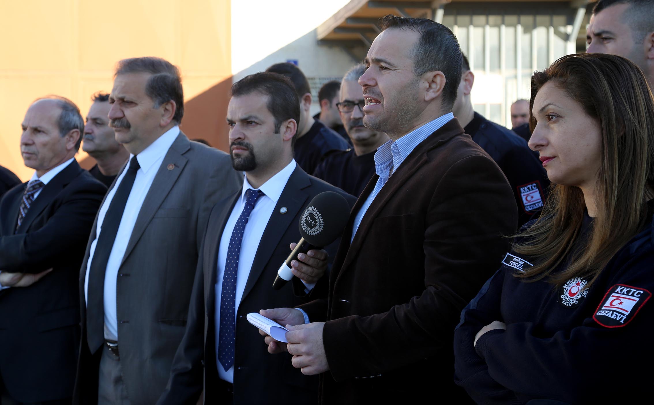 KAMU-SEN Başkanı Mehmet Özkardaş, KTAMS Başkanı Ahmet Kaptan konuşma yaparken, KTAMS Genel Sekreteri Güven Bengihan da ortak açıklamayı okudu.