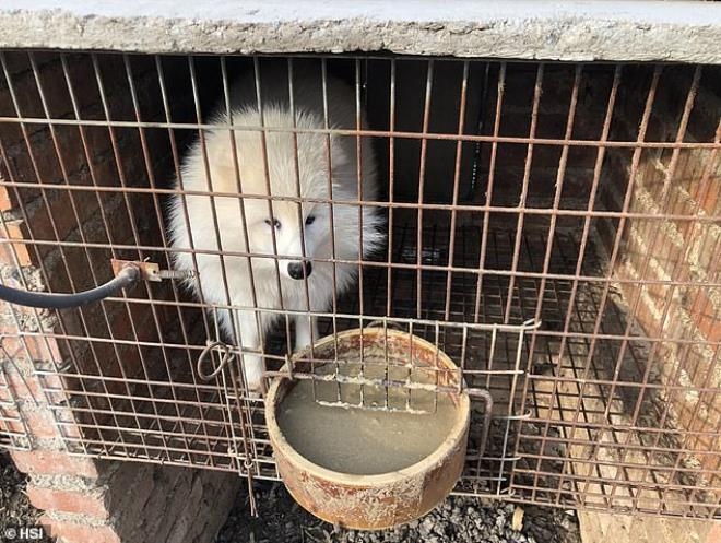 Çin'de bir kürk çiftliğinde hayvanlar, küçük kümeslerde tutuluyor. Diğer hayvanların gözleri önünde elektrik verilip öldürüldükten sonra derileri yüzülüyor.