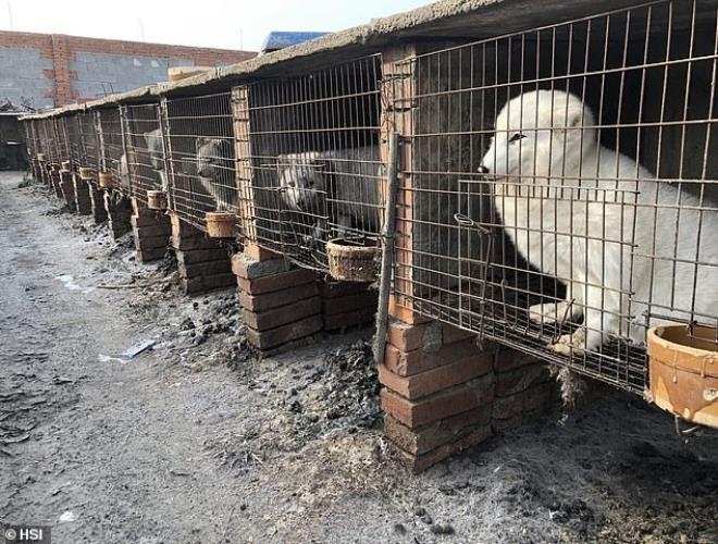 Çin'de bir kürk çiftliğinde hayvanlar, küçük kümeslerde tutuluyor. Diğer hayvanların gözleri önünde elektrik verilip öldürüldükten sonra derileri yüzülüyor.