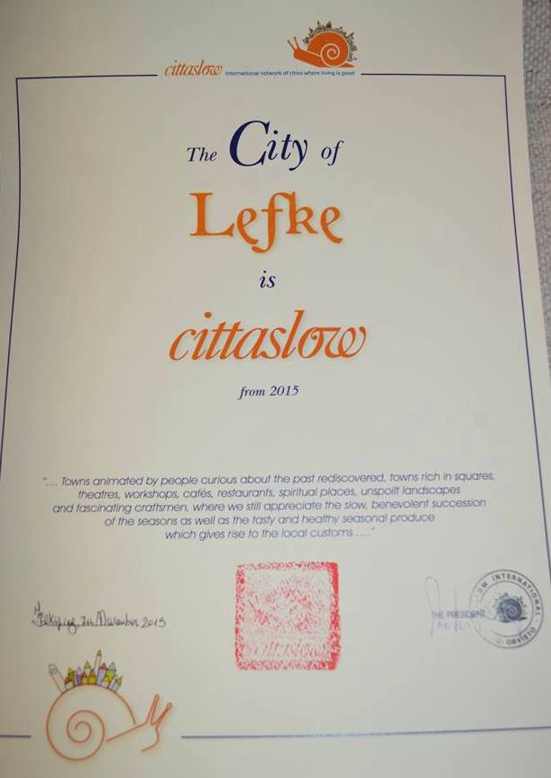 Düzenlenen törende Lefke Belediye Başkanı Aziz Kaya’ya, cittaslow bayrağı ve katılım belgesi, cittaslow Genel başkanı Stefano Pisani, Genel Sekreteri Pier Giorgio Oliveti ve Cittaslow Asbaşkanı Seferihisar Belediye başkanı Tunç Soyer tarafından takdim edildi. Lefke Belediye başkanı Aziz Kaya’ya İsveç temaslarına, Lefke Turizm Derneği Başkanı Hasan Karlıtaş da eşlik etti.