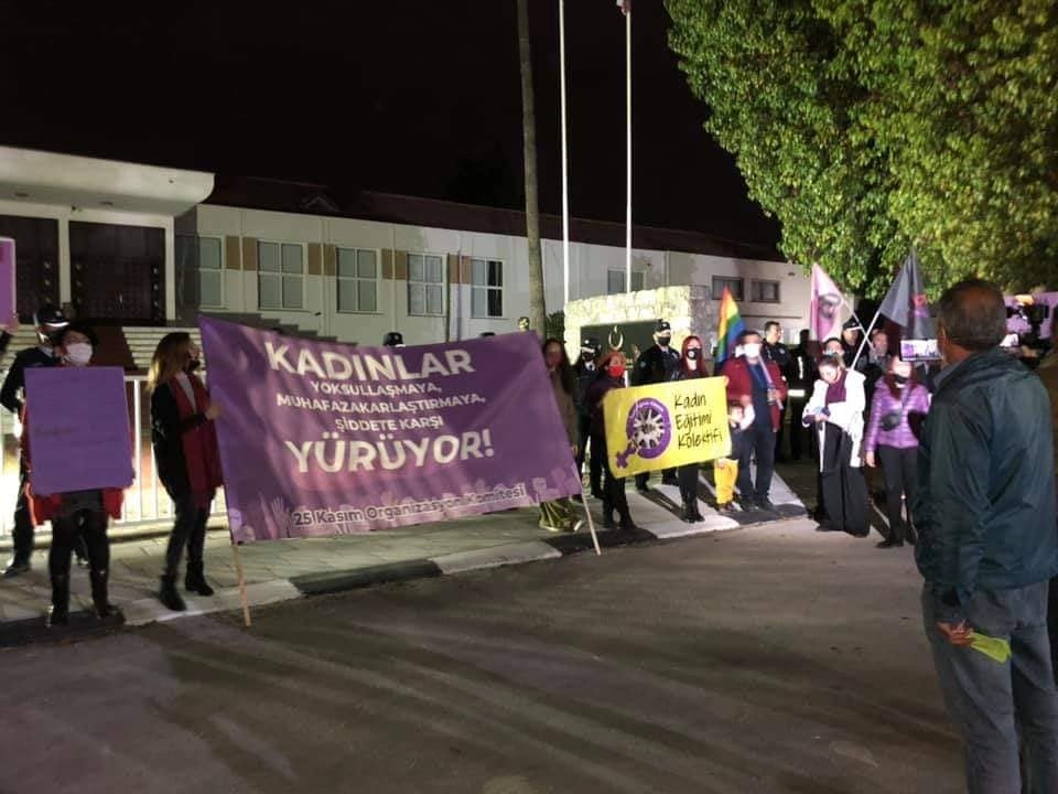 25 Kasım Organizasyon Komitesi bileşenleri; Bağımsızlık Yolu, Baraka Kültür Merkezi, BES, GÜÇ-SEN, HAK-SEN, Kadın Eğitimi Kolektifi ve KTOEÖS Kadına Yönelik Şiddetle Mücadele Günü için dün akşam Kumsal Parkı önünde toplanarak Meclis önüne yürüyüş yaptı