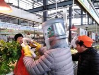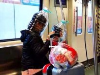 Maske yerine greyfurt ve portakal kabuğu takandan kafasına motor kasketi geçirene trajikomik görüntüler ortaya çıktı.