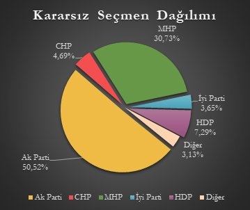 Bursa'da kararsız seçmenin 24 Haziran'da kullandığı oylara göre dağılımı