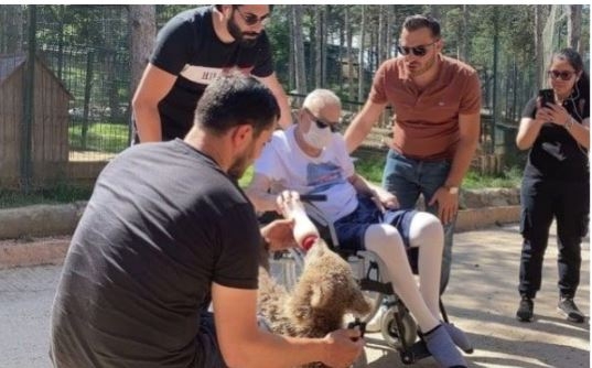 Ünlü komedyenin tekerlekli sandalyedeki haliyle hayvanlara süt içirdiği ziyarette, zaman zaman elinin titrediği görülmüştü.