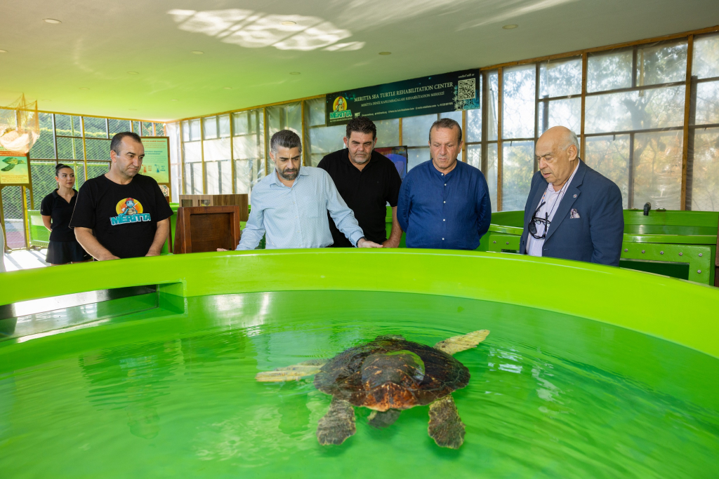 Oldukça verimli geçen çalıştayın 2. gününde; Başbakan Yardımcısı, Turizm, Kültür, Gençlik ve Çevre Bakanı Fikri Ataoğlu, Bakanlık Müdürü Mehmet Yalçın, Turizm Planlama Dairesi Müdürü Mazlum Kortaş ve Çevre Koruma Dairesi Müdürü Abdullah Aktolgalı, Meritta Deniz Kaplumbağaları Rehabilitasyon Merkezi’ni ziyaret ederek yapılan çalışmalar hakkında bilgi aldı.